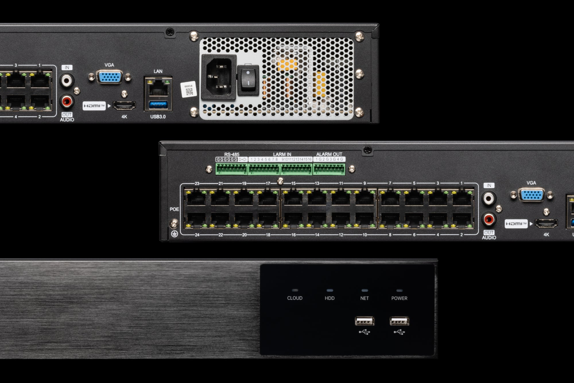 24 PoE ports ready to connect up to 24 Zxtech cameras, each with a resolution of up to 4K or 12MP.